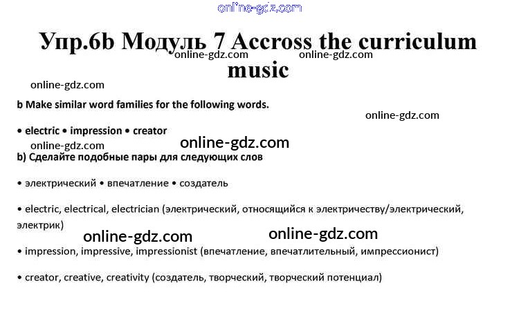 Готовые домашние задания по Английскому языку за 10 класс Учебник Афанасьева, Дули Spotlight 2015 - Accross the curriculum Music Module 7 6b