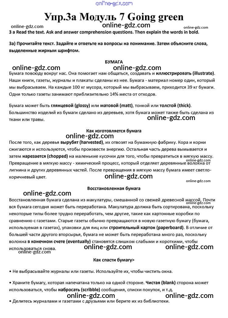 Готовые домашние задания по Английскому языку за 10 класс Учебник Афанасьева, Дули Spotlight 2015 - Going green Module 7 3a