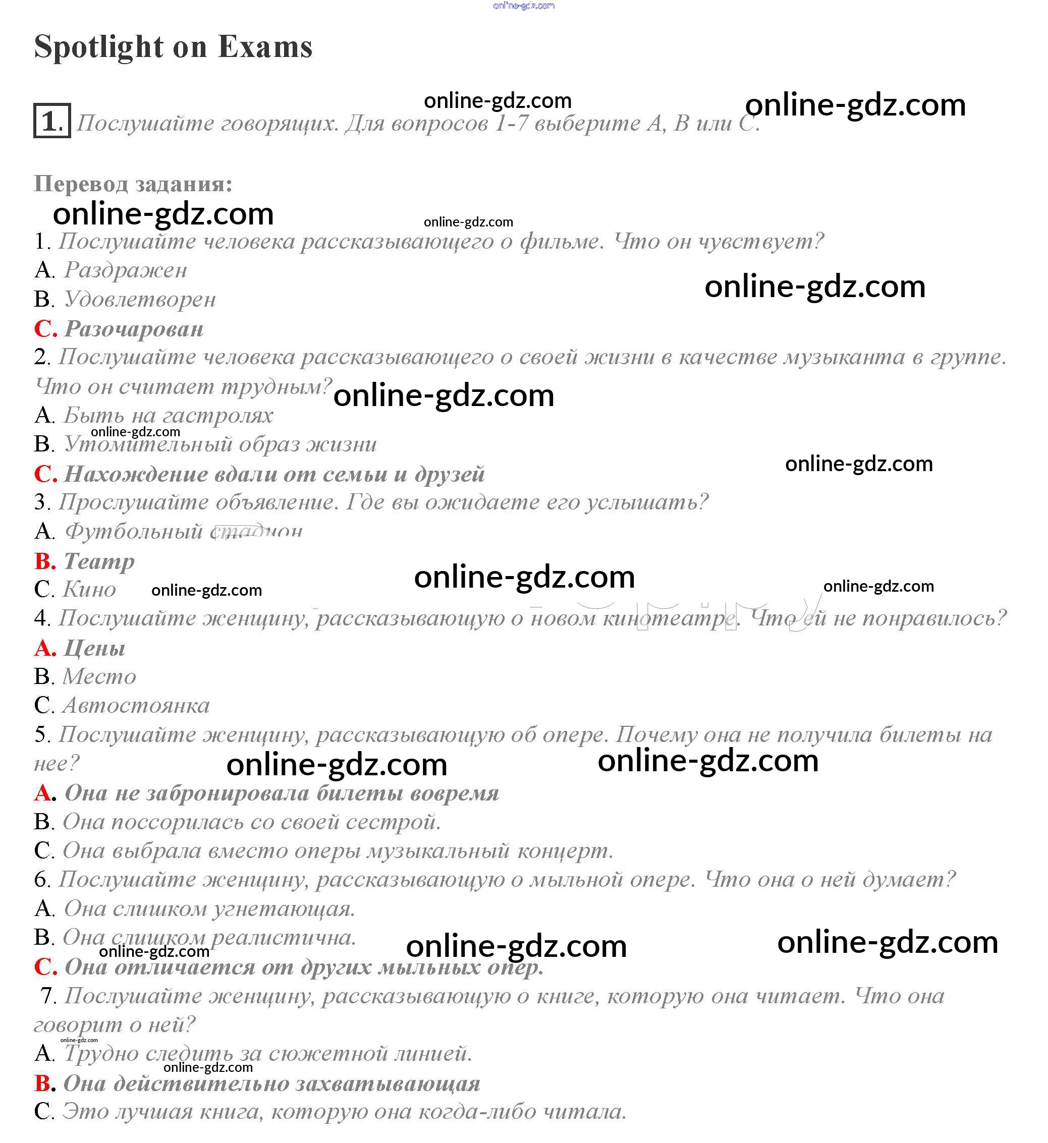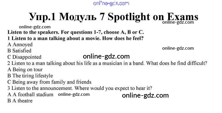 Готовые домашние задания по Английскому языку за 10 класс Учебник Афанасьева, Дули Spotlight 2015 - Spotlight on Exams Module 7 1