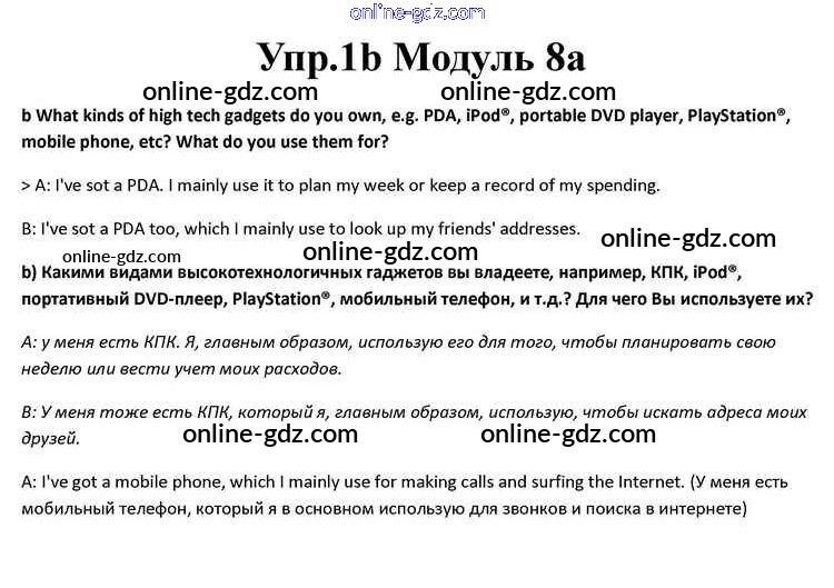 Готовые домашние задания по Английскому языку за 10 класс Учебник Афанасьева, Дули Spotlight 2015 - Часть 8a Module 8 1b