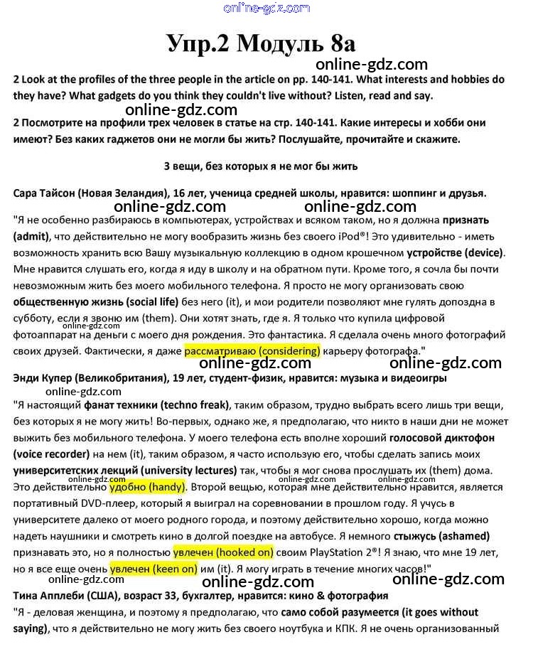 Готовые домашние задания по Английскому языку за 10 класс Учебник Афанасьева, Дули Spotlight 2015 - Часть 8a Module 8 2