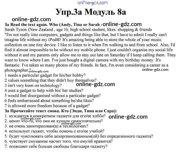 Готовые домашние задания по Английскому языку за 10 класс Учебник Афанасьева, Дули Spotlight 2015 - Часть 8a Module 8 3a