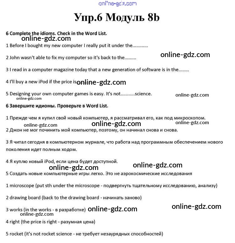 Готовые домашние задания по Английскому языку за 10 класс Учебник Афанасьева, Дули Spotlight 2015 - Часть 8b Module 8 6