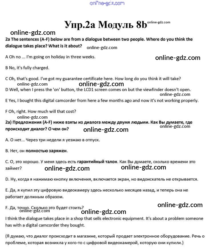 Готовые домашние задания по Английскому языку за 10 класс Учебник Афанасьева, Дули Spotlight 2015 - Часть 8b Module 8 2a