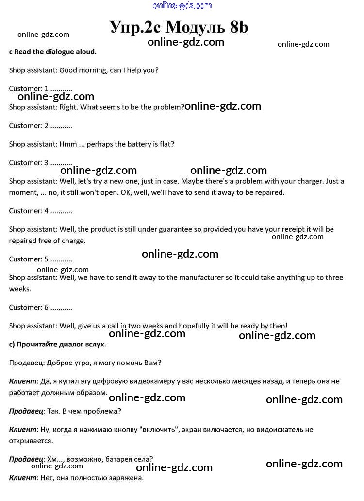 Готовые домашние задания по Английскому языку за 10 класс Учебник Афанасьева, Дули Spotlight 2015 - Часть 8b Module 8 2c