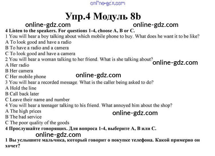 Готовые домашние задания по Английскому языку за 10 класс Учебник Афанасьева, Дули Spotlight 2015 - Часть 8b Module 8 4