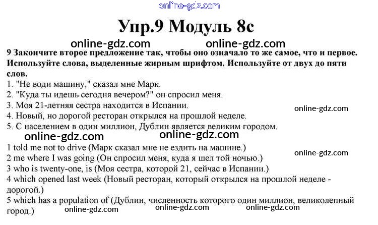 Готовые домашние задания по Английскому языку за 10 класс Учебник Афанасьева, Дули Spotlight 2015 - Часть 8c Module 8 9