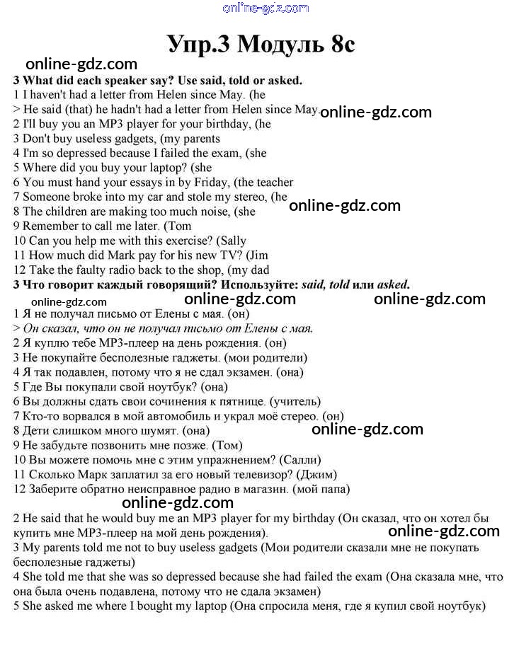 Готовые домашние задания по Английскому языку за 10 класс Учебник Афанасьева, Дули Spotlight 2015 - Часть 8c Module 8 3