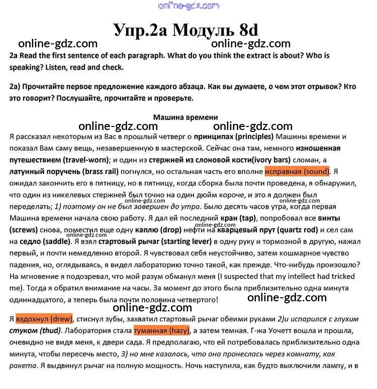 Готовые домашние задания по Английскому языку за 10 класс Учебник Афанасьева, Дули Spotlight 2015 - Часть 8d Module 8 2a