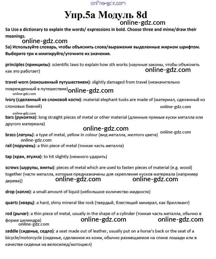 Готовые домашние задания по Английскому языку за 10 класс Учебник Афанасьева, Дули Spotlight 2015 - Часть 8d Module 8 5a