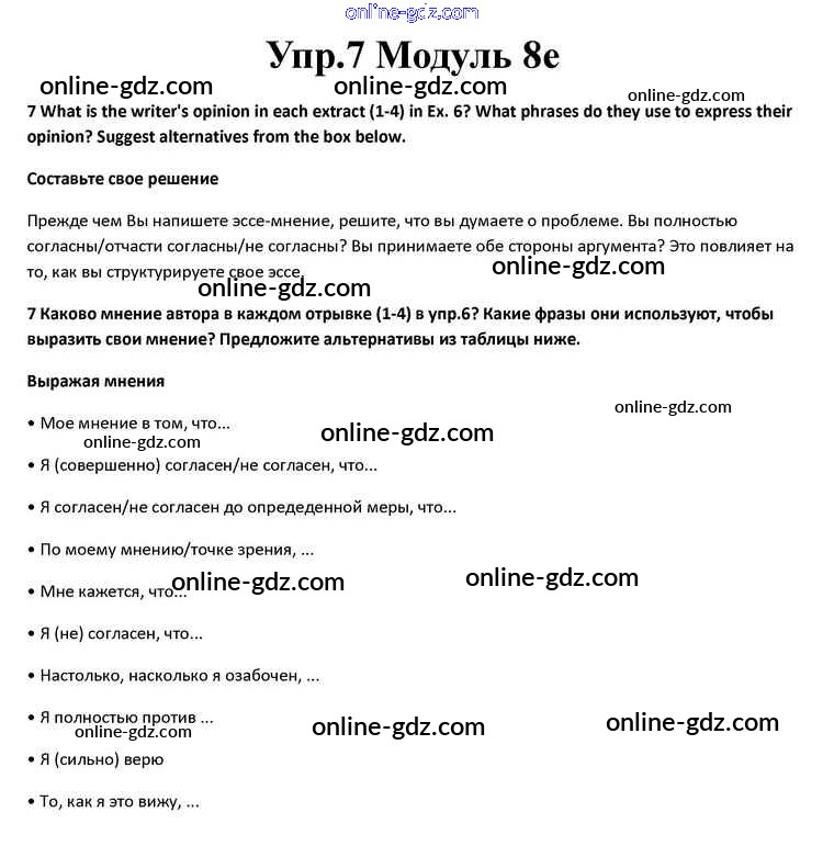 Готовые домашние задания по Английскому языку за 10 класс Учебник Афанасьева, Дули Spotlight 2015 - Часть 8e Module 8 7