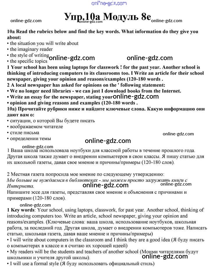 Готовые домашние задания по Английскому языку за 10 класс Учебник Афанасьева, Дули Spotlight 2015 - Часть 8e Module 8 10a