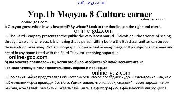 Готовые домашние задания по Английскому языку за 10 класс Учебник Афанасьева, Дули Spotlight 2015 - Culture corner Module 8 1b