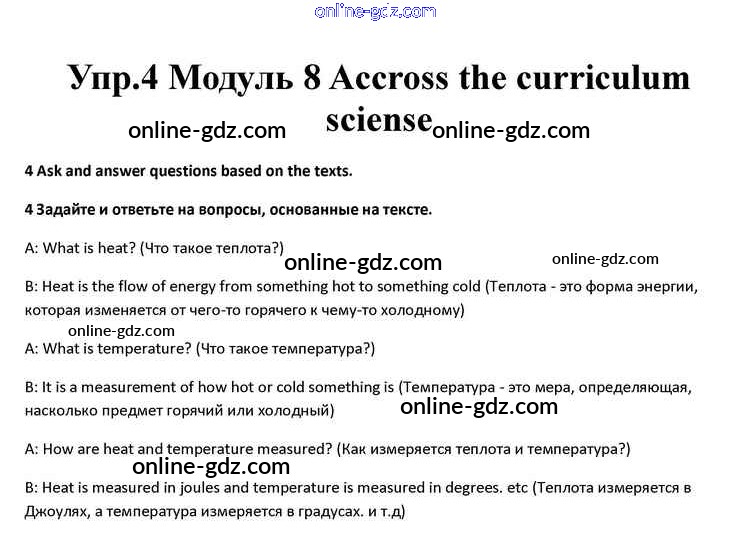 Готовые домашние задания по Английскому языку за 10 класс Учебник Афанасьева, Дули Spotlight 2015 - Accross the curriculum Sciense Module 8 4