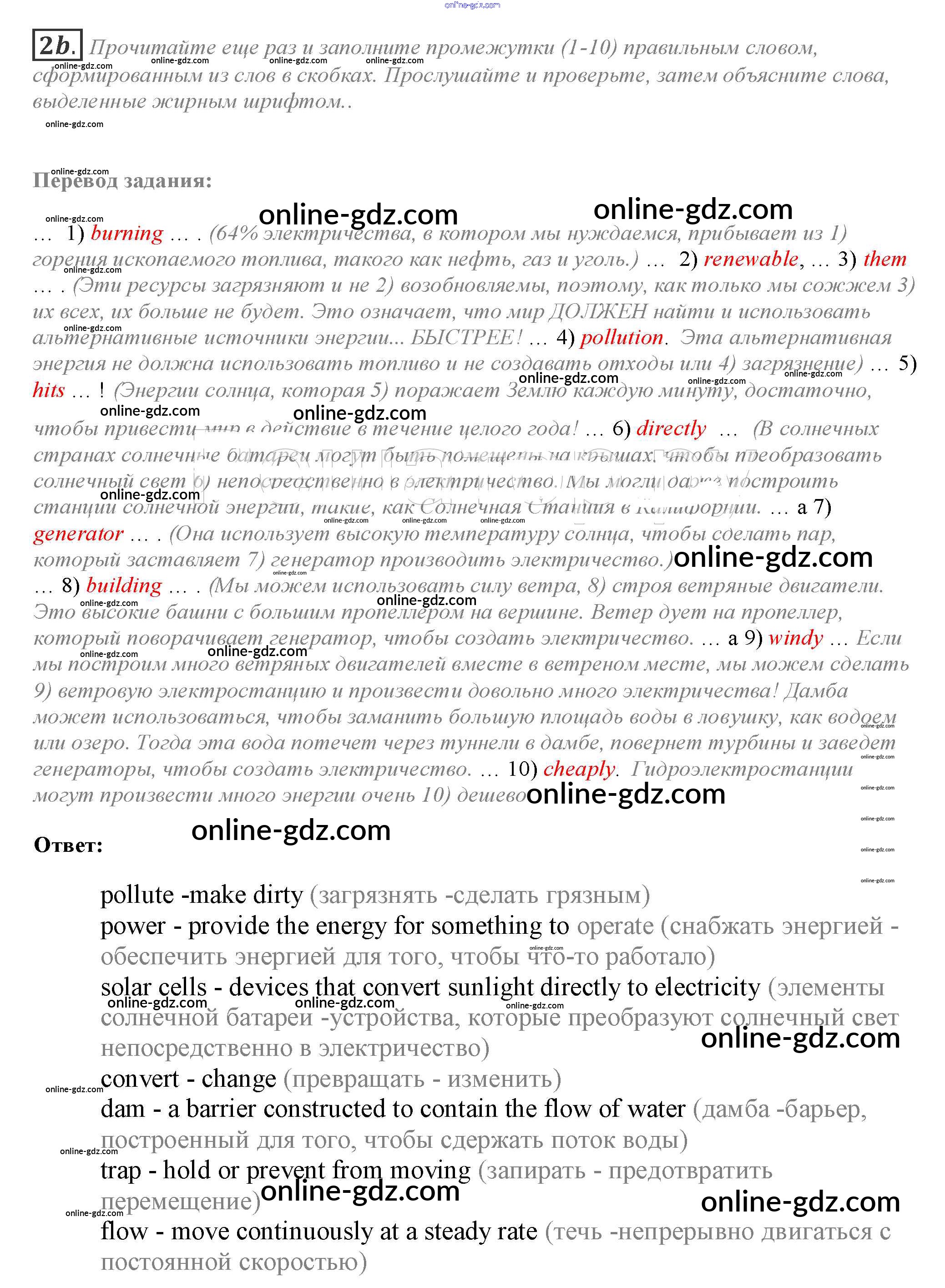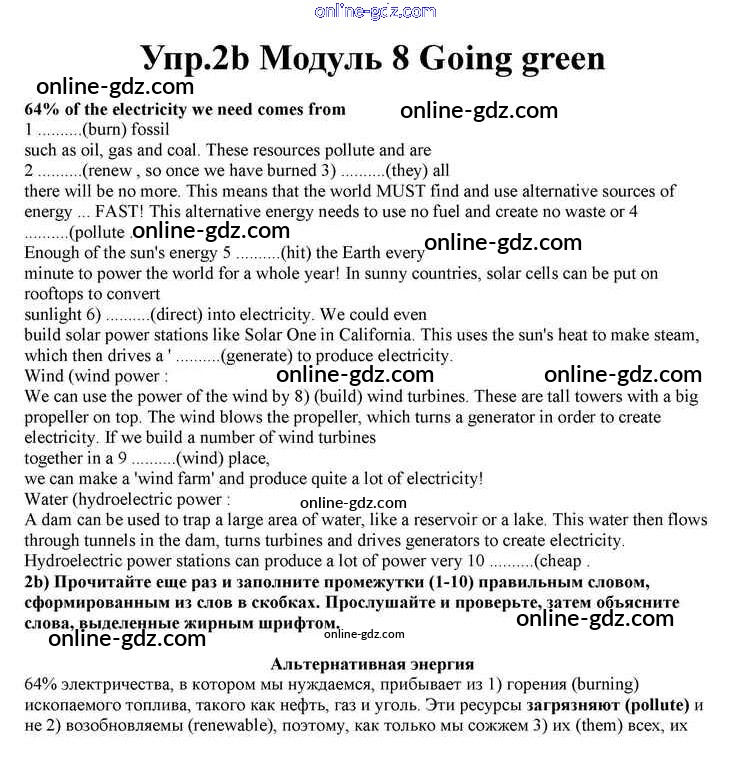 Готовые домашние задания по Английскому языку за 10 класс Учебник Афанасьева, Дули Spotlight 2015 - Going green Module 8 2b