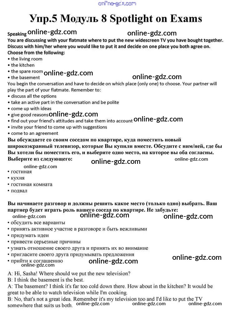 Готовые домашние задания по Английскому языку за 10 класс Учебник Афанасьева, Дули Spotlight 2015 - Spotlight on Exams Module 8 5