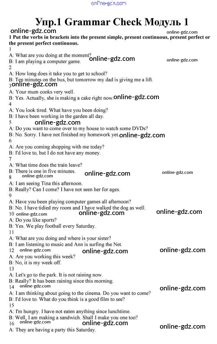 Готовые домашние задания по Английскому языку за 10 класс Учебник Афанасьева, Дули Spotlight 2015 - Module 1 Grammar Check 1
