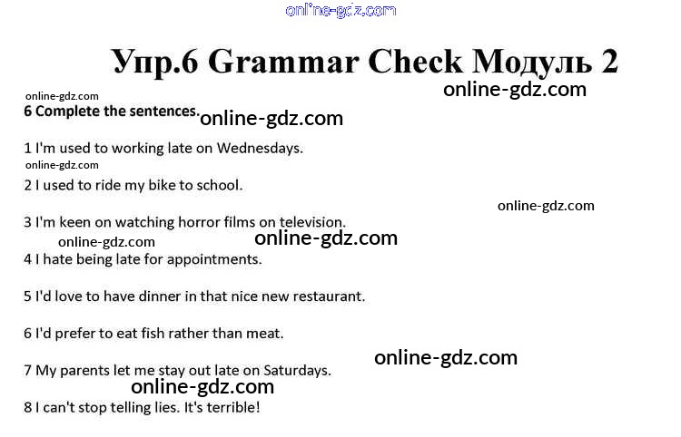 Готовые домашние задания по Английскому языку за 10 класс Учебник Афанасьева, Дули Spotlight 2015 - Module 2 Grammar Check 6