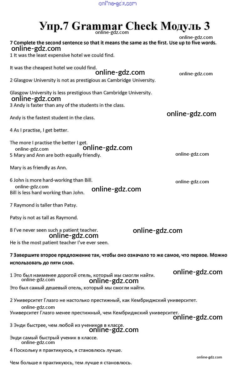 Готовые домашние задания по Английскому языку за 10 класс Учебник Афанасьева, Дули Spotlight 2015 - Module 3 Grammar Check 7