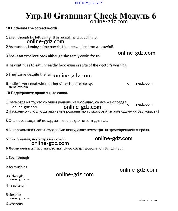 Готовые домашние задания по Английскому языку за 10 класс Учебник Афанасьева, Дули Spotlight 2015 - Module 6 Grammar Check 10