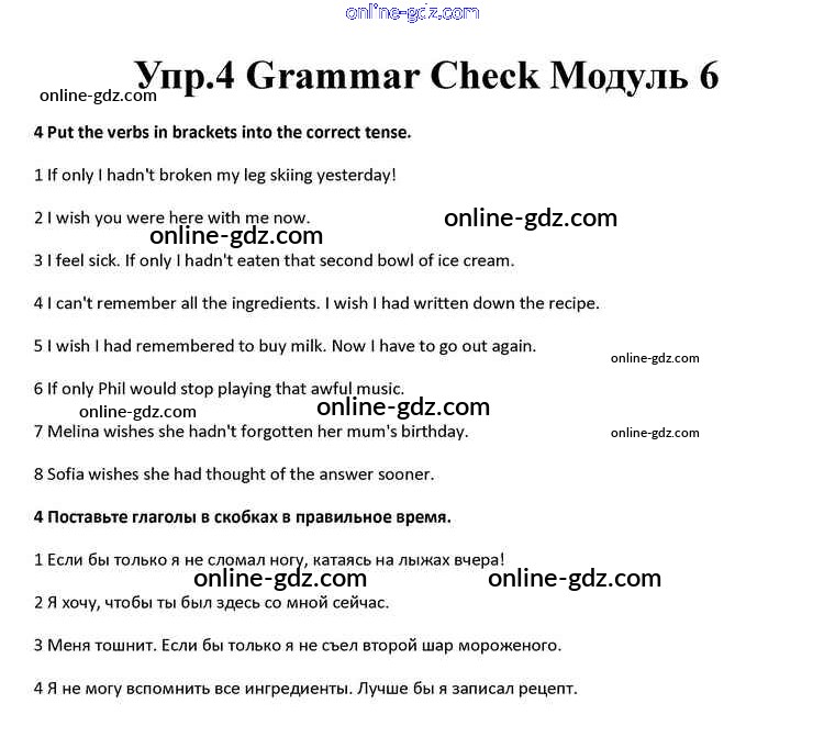 Готовые домашние задания по Английскому языку за 10 класс Учебник Афанасьева, Дули Spotlight 2015 - Module 6 Grammar Check 4