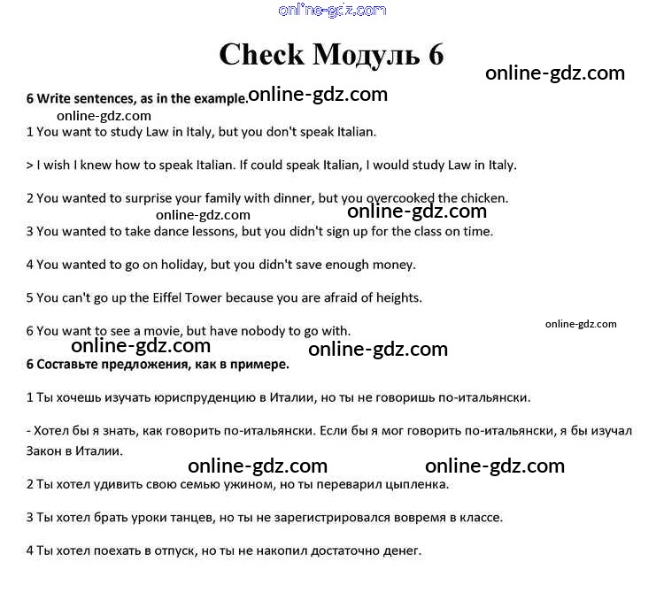 Готовые домашние задания по Английскому языку за 10 класс Учебник Афанасьева, Дули Spotlight 2015 - Module 6 Grammar Check 6