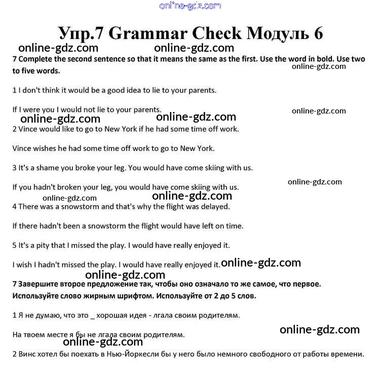 Готовые домашние задания по Английскому языку за 10 класс Учебник Афанасьева, Дули Spotlight 2015 - Module 6 Grammar Check 7