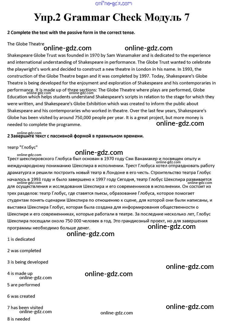 Готовые домашние задания по Английскому языку за 10 класс Учебник Афанасьева, Дули Spotlight 2015 - Module 7 Grammar Check 2