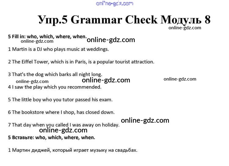 Готовые домашние задания по Английскому языку за 10 класс Учебник Афанасьева, Дули Spotlight 2015 - Module 8 Grammar Check 5