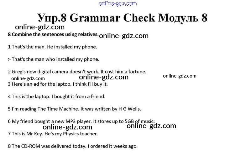 Готовые домашние задания по Английскому языку за 10 класс Учебник Афанасьева, Дули Spotlight 2015 - Module 8 Grammar Check 8