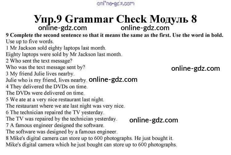 Готовые домашние задания по Английскому языку за 10 класс Учебник Афанасьева, Дули Spotlight 2015 - Module 8 Grammar Check 9