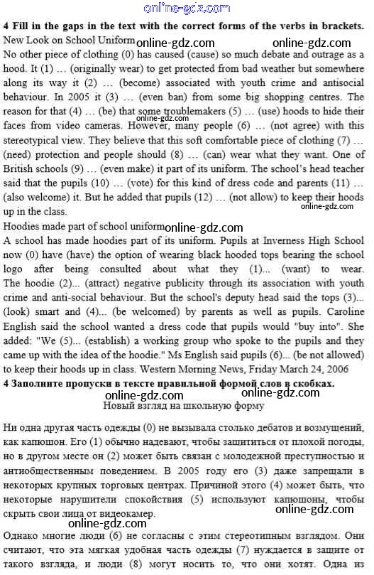 Готовые домашние задания по Английскому языку за 10 класс Учебник Биболетова, Денисенко Enjoy English 2016 - Progress Check Unit 1. Start anew 4