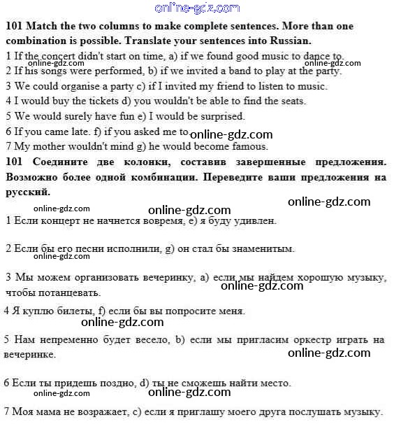 Готовые домашние задания по Английскому языку за 10 класс Учебник Биболетова, Денисенко Enjoy English 2016 - Unit 1. Start anew 101