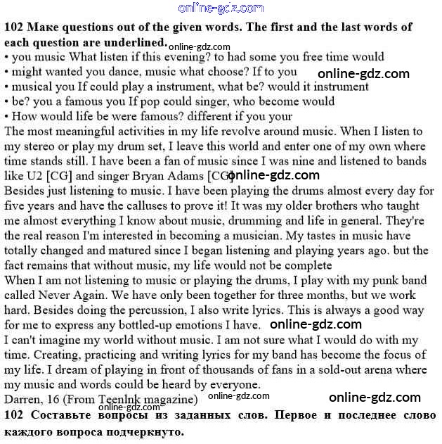 Готовые домашние задания по Английскому языку за 10 класс Учебник Биболетова, Денисенко Enjoy English 2016 - Unit 1. Start anew 102