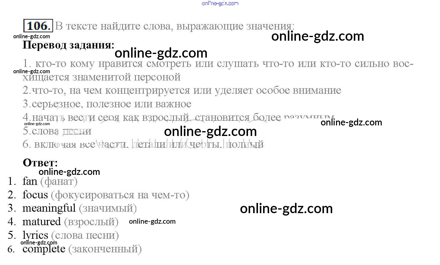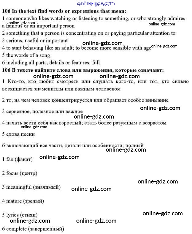 Готовые домашние задания по Английскому языку за 10 класс Учебник Биболетова, Денисенко Enjoy English 2016 - Unit 1. Start anew 106