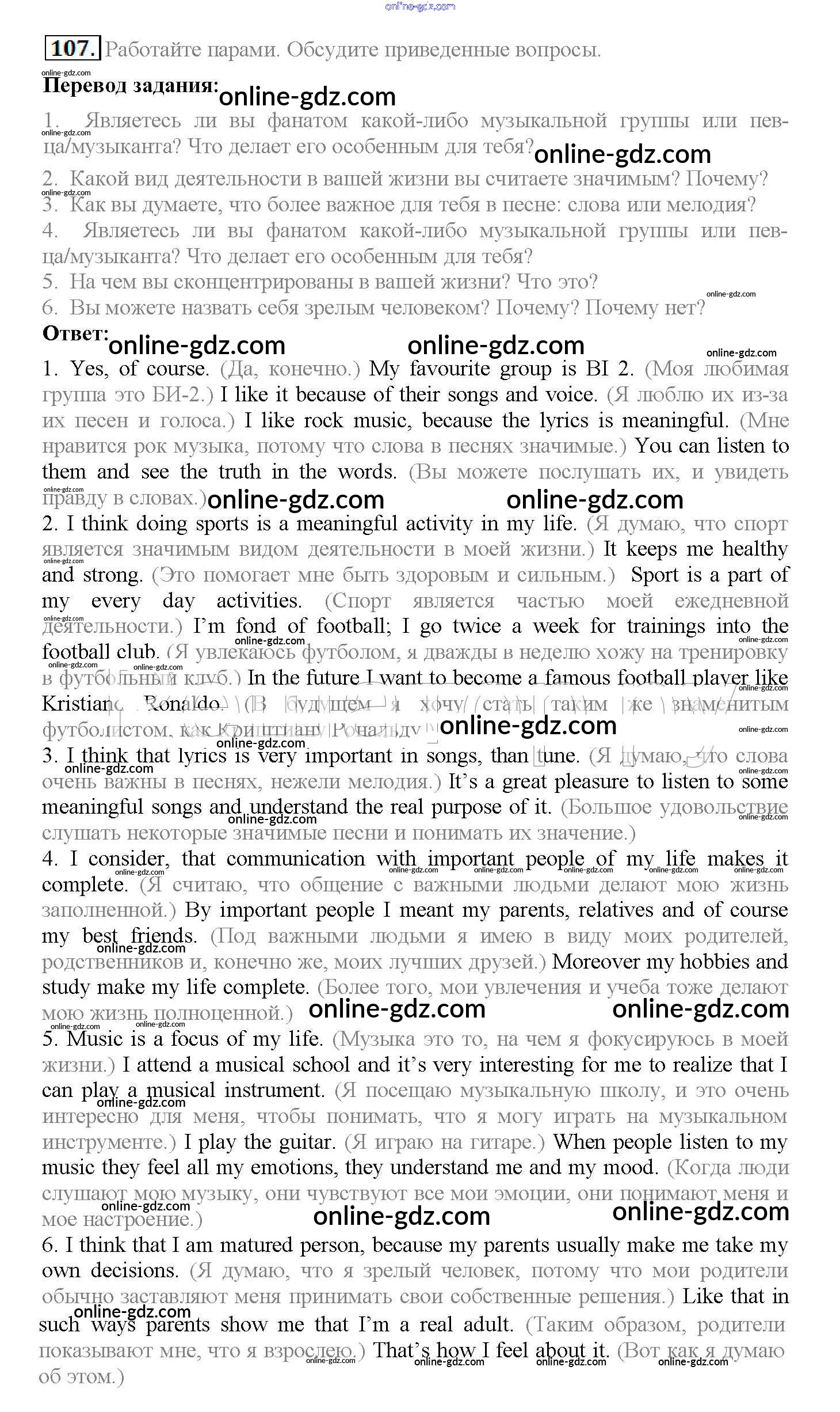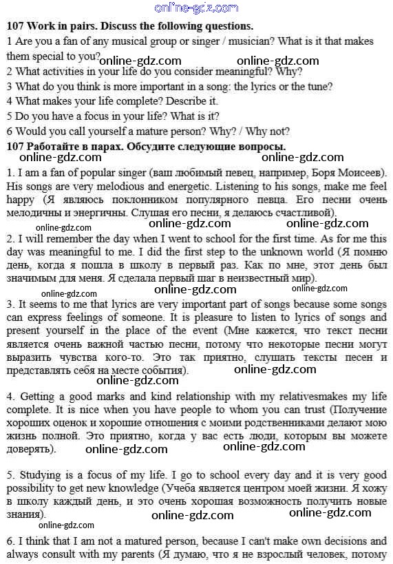 Готовые домашние задания по Английскому языку за 10 класс Учебник Биболетова, Денисенко Enjoy English 2016 - Unit 1. Start anew 107