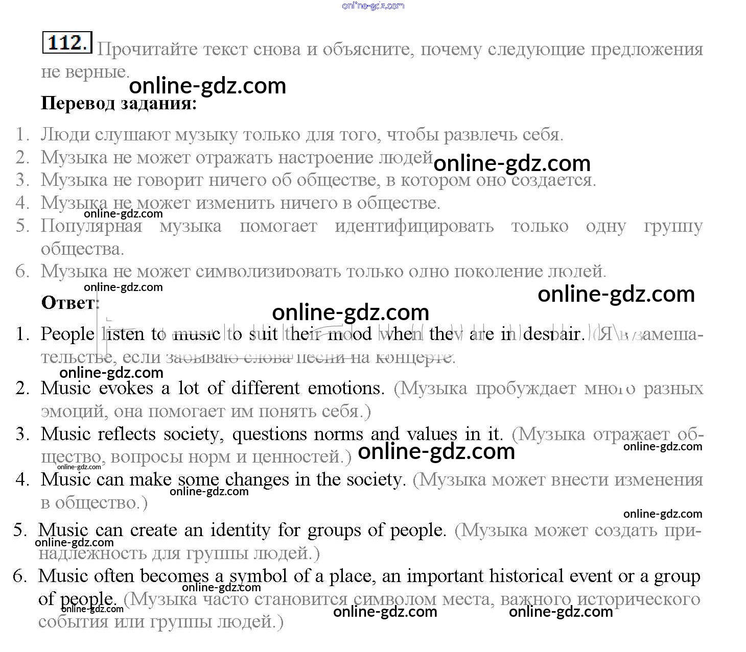 Готовые домашние задания по Английскому языку за 10 класс Учебник Биболетова, Денисенко Enjoy English 2016 - Unit 1. Start anew 112