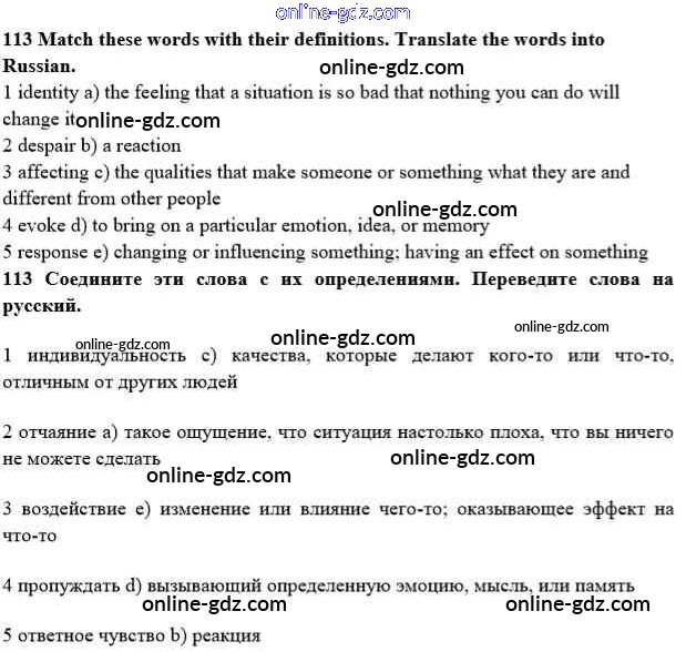 Готовые домашние задания по Английскому языку за 10 класс Учебник Биболетова, Денисенко Enjoy English 2016 - Unit 1. Start anew 113
