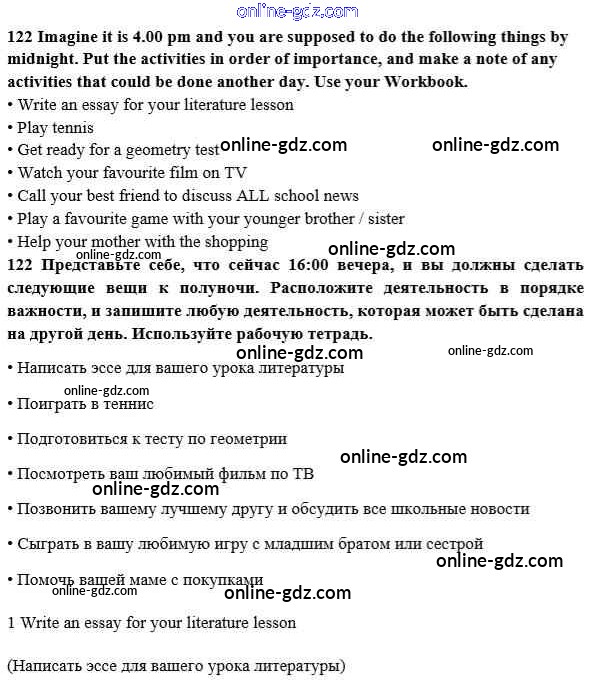 Готовые домашние задания по Английскому языку за 10 класс Учебник Биболетова, Денисенко Enjoy English 2016 - Unit 1. Start anew 122