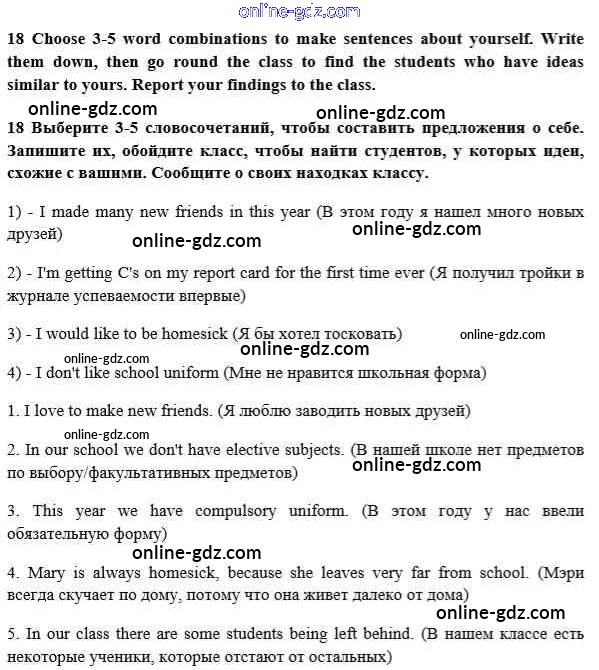 Готовые домашние задания по Английскому языку за 10 класс Учебник Биболетова, Денисенко Enjoy English 2016 - Unit 1. Start anew 18