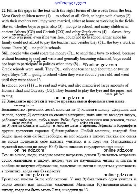 Готовые домашние задания по Английскому языку за 10 класс Учебник Биболетова, Денисенко Enjoy English 2016 - Unit 1. Start anew 22