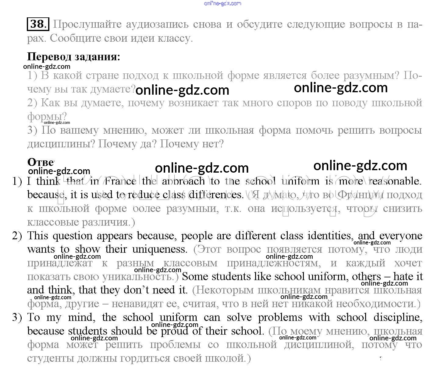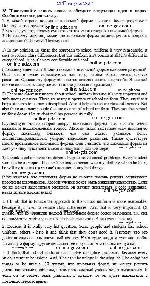 Готовые домашние задания по Английскому языку за 10 класс Учебник Биболетова, Денисенко Enjoy English 2016 - Unit 1. Start anew 38