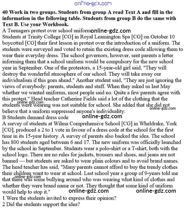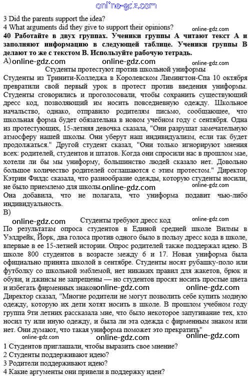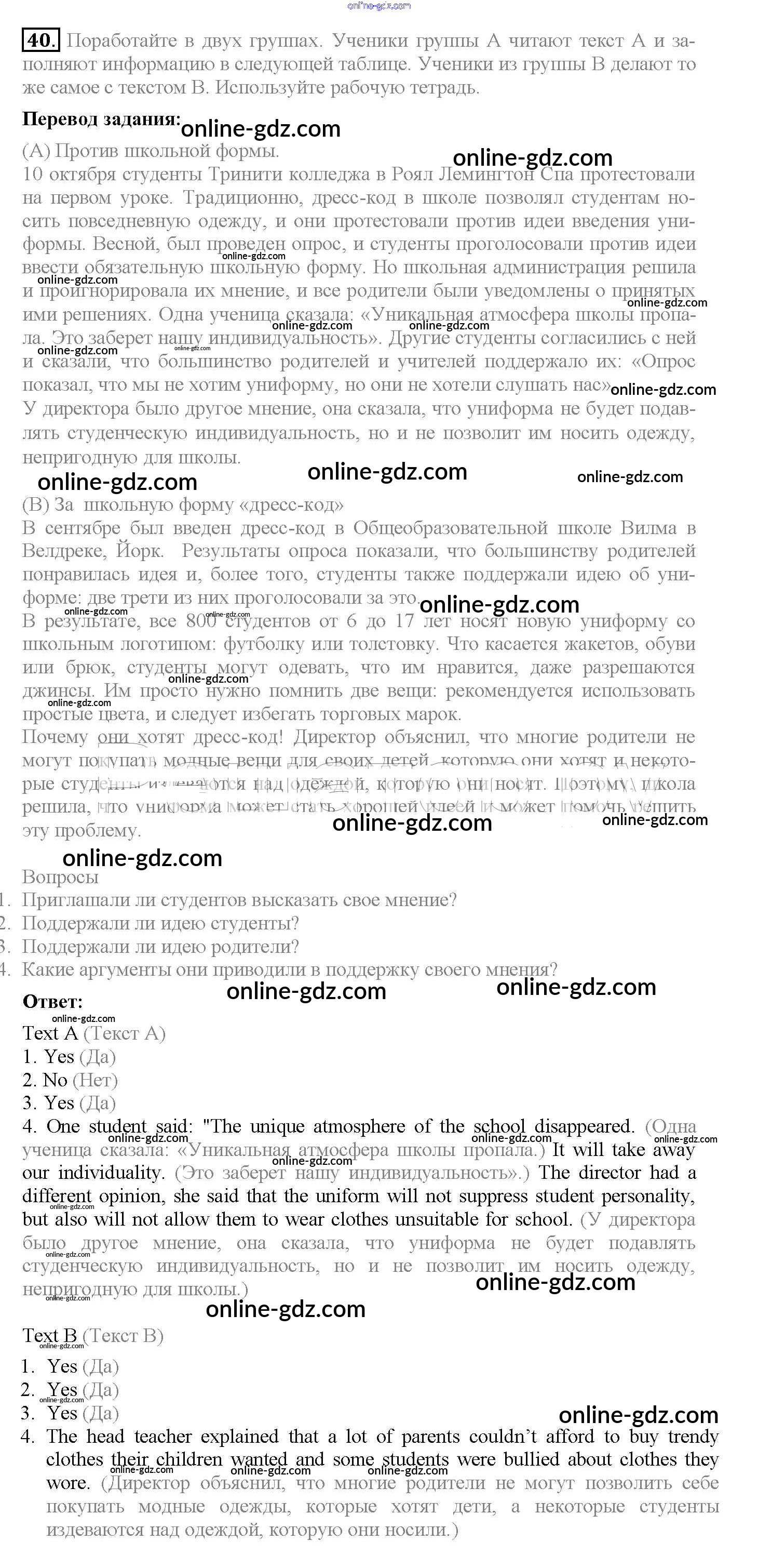 Готовые домашние задания по Английскому языку за 10 класс Учебник Биболетова, Денисенко Enjoy English 2016 - Unit 1. Start anew 40