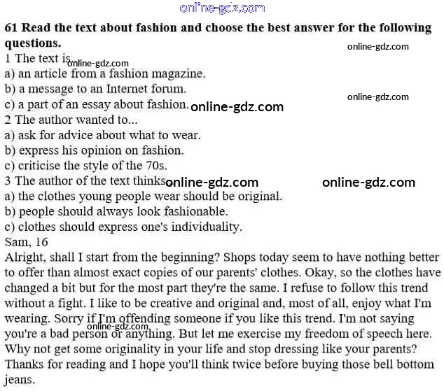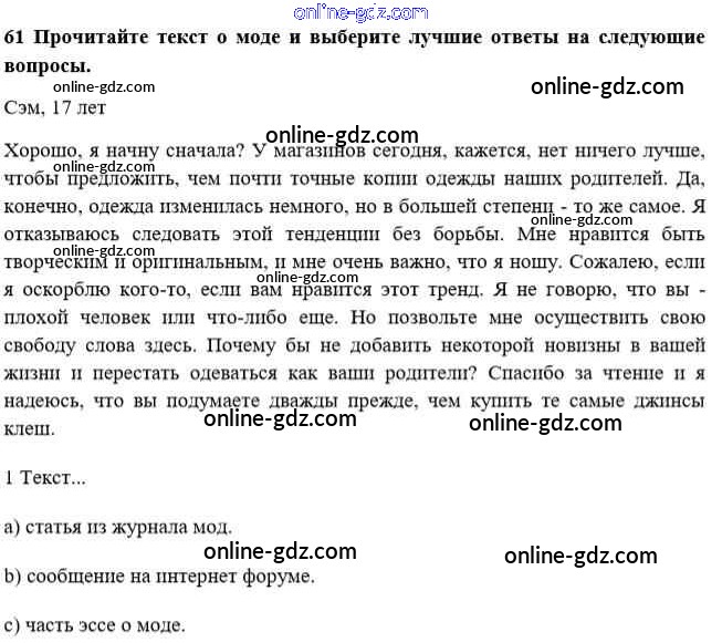 Готовые домашние задания по Английскому языку за 10 класс Учебник Биболетова, Денисенко Enjoy English 2016 - Unit 1. Start anew 61