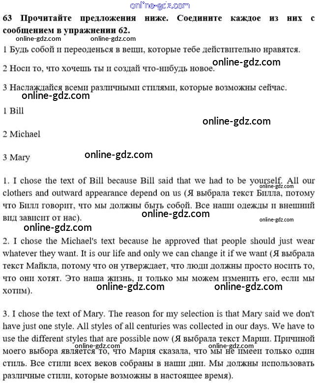 Готовые домашние задания по Английскому языку за 10 класс Учебник Биболетова, Денисенко Enjoy English 2016 - Unit 1. Start anew 63