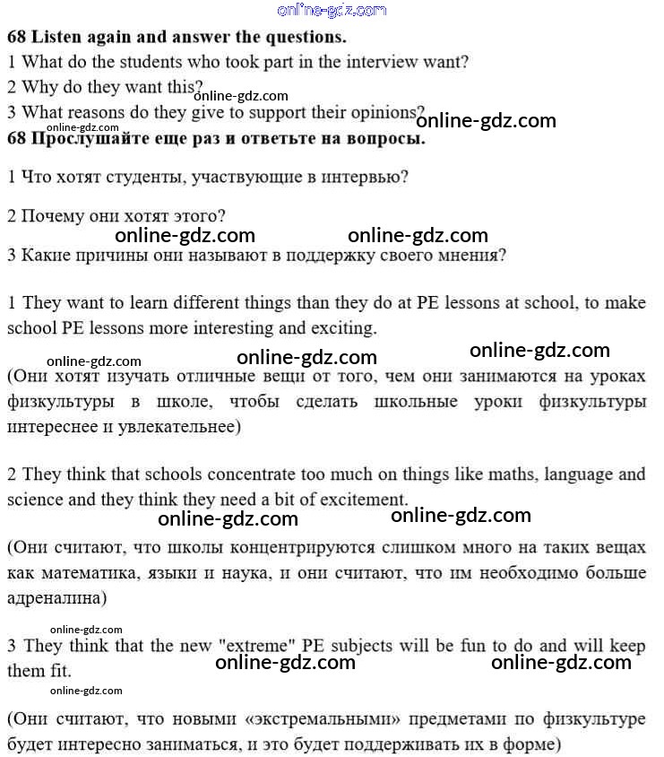 Готовые домашние задания по Английскому языку за 10 класс Учебник Биболетова, Денисенко Enjoy English 2016 - Unit 1. Start anew 68