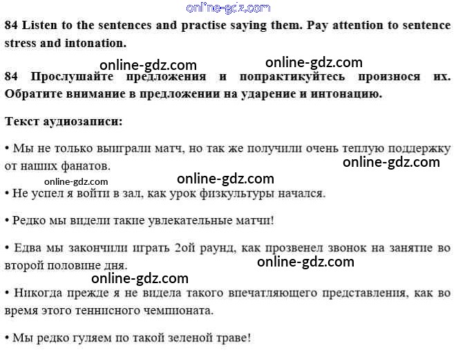 Готовые домашние задания по Английскому языку за 10 класс Учебник Биболетова, Денисенко Enjoy English 2016 - Unit 1. Start anew 84