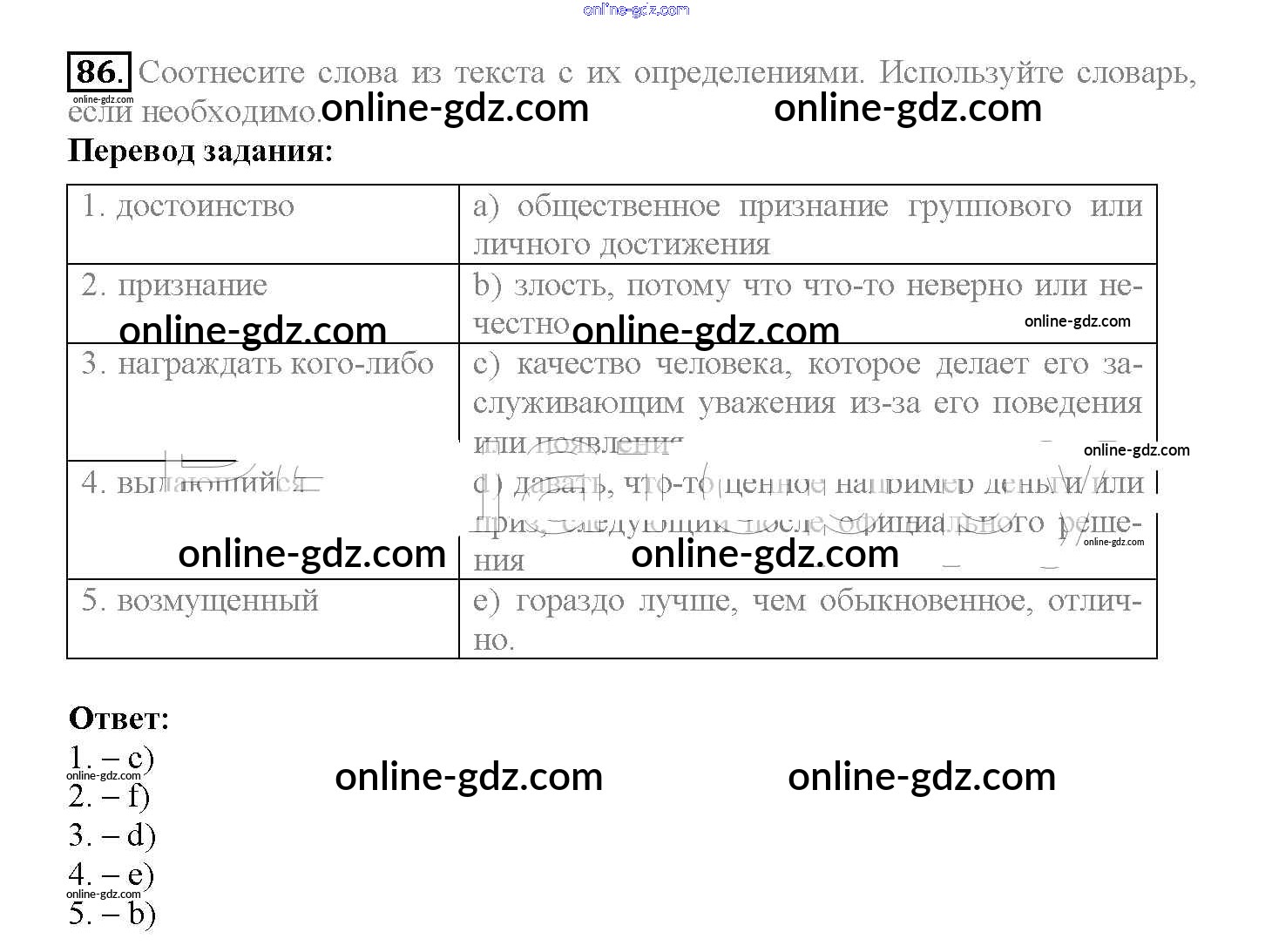 Готовые домашние задания по Английскому языку за 10 класс Учебник Биболетова, Денисенко Enjoy English 2016 - Unit 1. Start anew 86