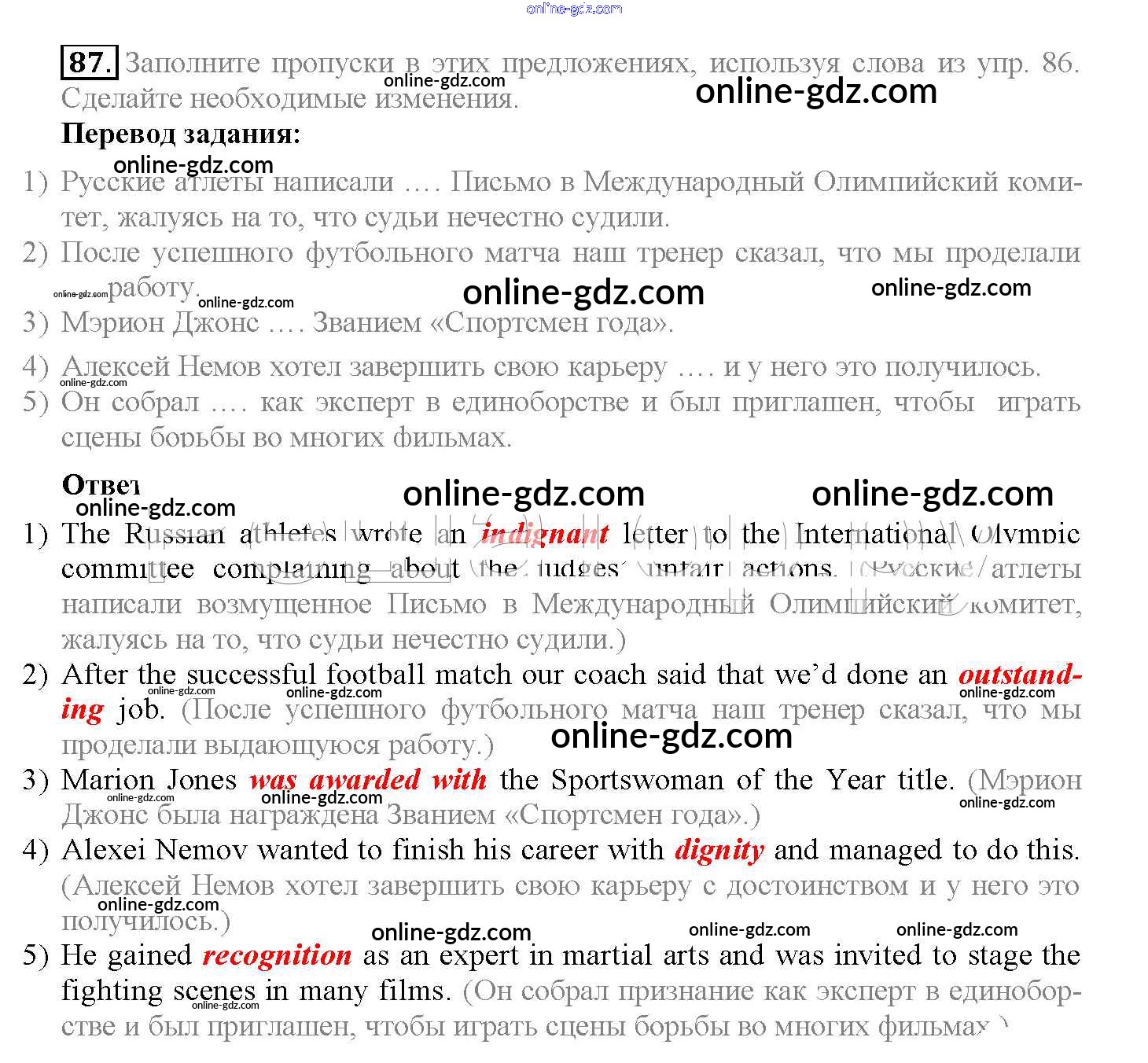 Готовые домашние задания по Английскому языку за 10 класс Учебник Биболетова, Денисенко Enjoy English 2016 - Unit 1. Start anew 87