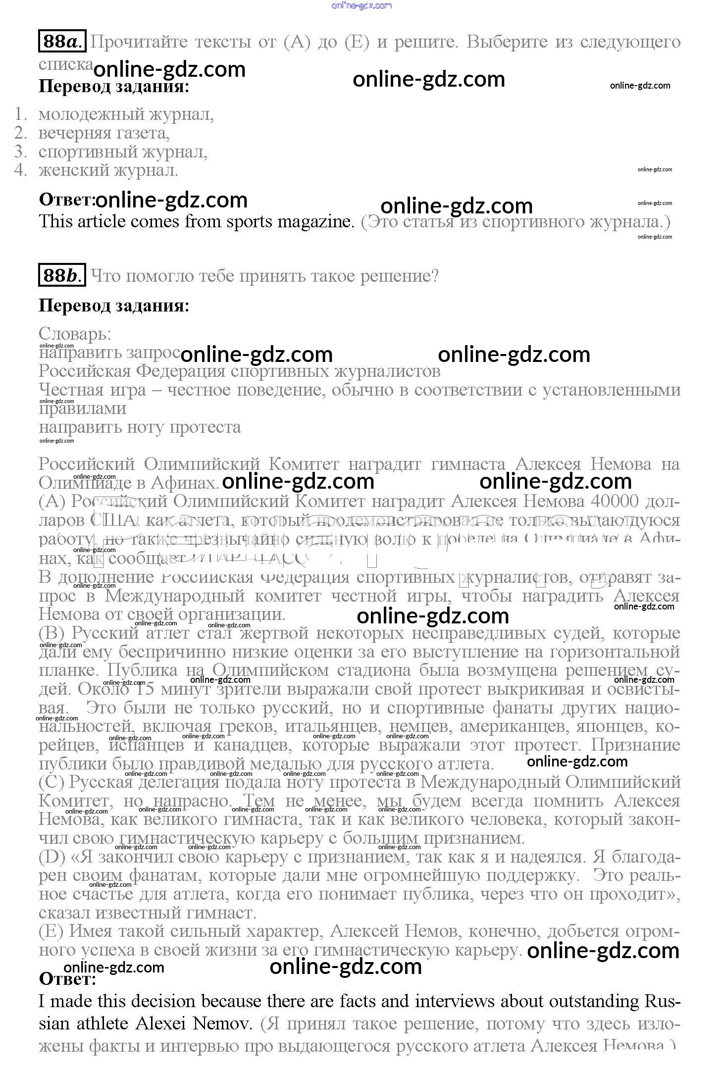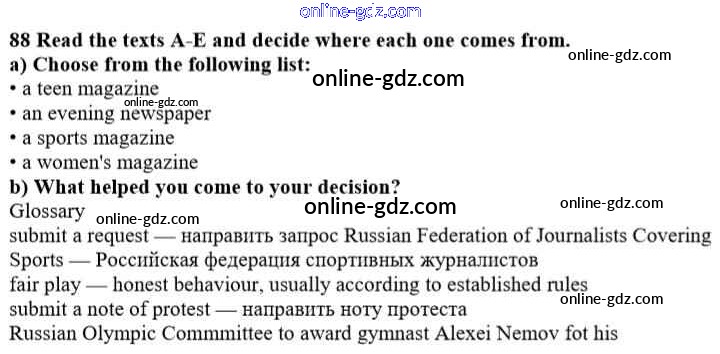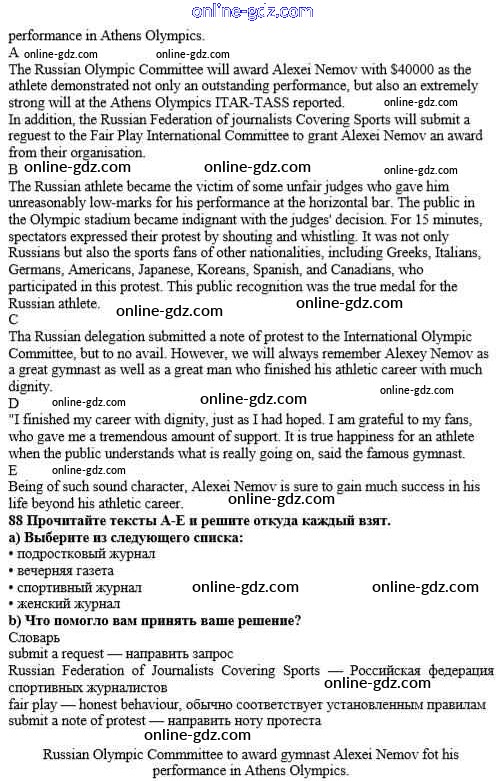 Готовые домашние задания по Английскому языку за 10 класс Учебник Биболетова, Денисенко Enjoy English 2016 - Unit 1. Start anew 88